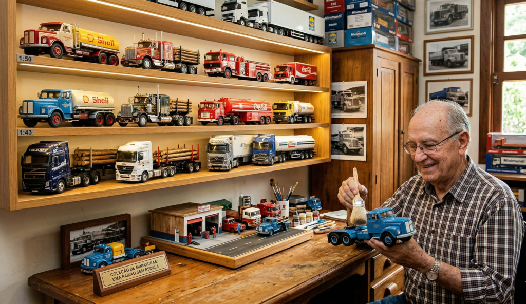 • Conexão Pessoal: Colecionar miniaturas de caminhões remete a memórias da infância ou a uma paixão por veículos.